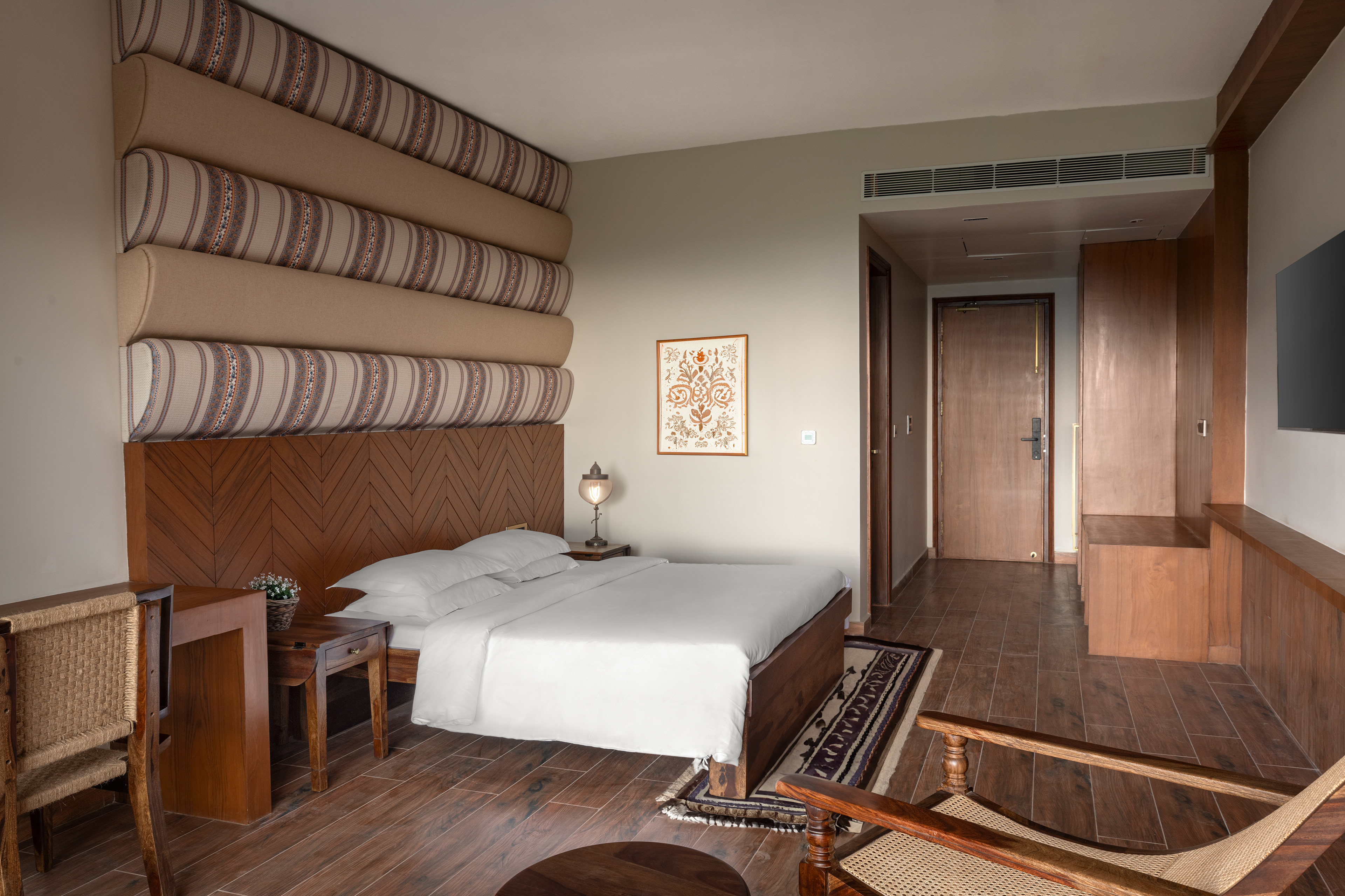 Psychological Comfort: The earthy tones and plush furnishings create a deeply peaceful and rejuvenating atmosphere, setting the tone for an unforgettable stay from the very moment a guest steps through the doors.