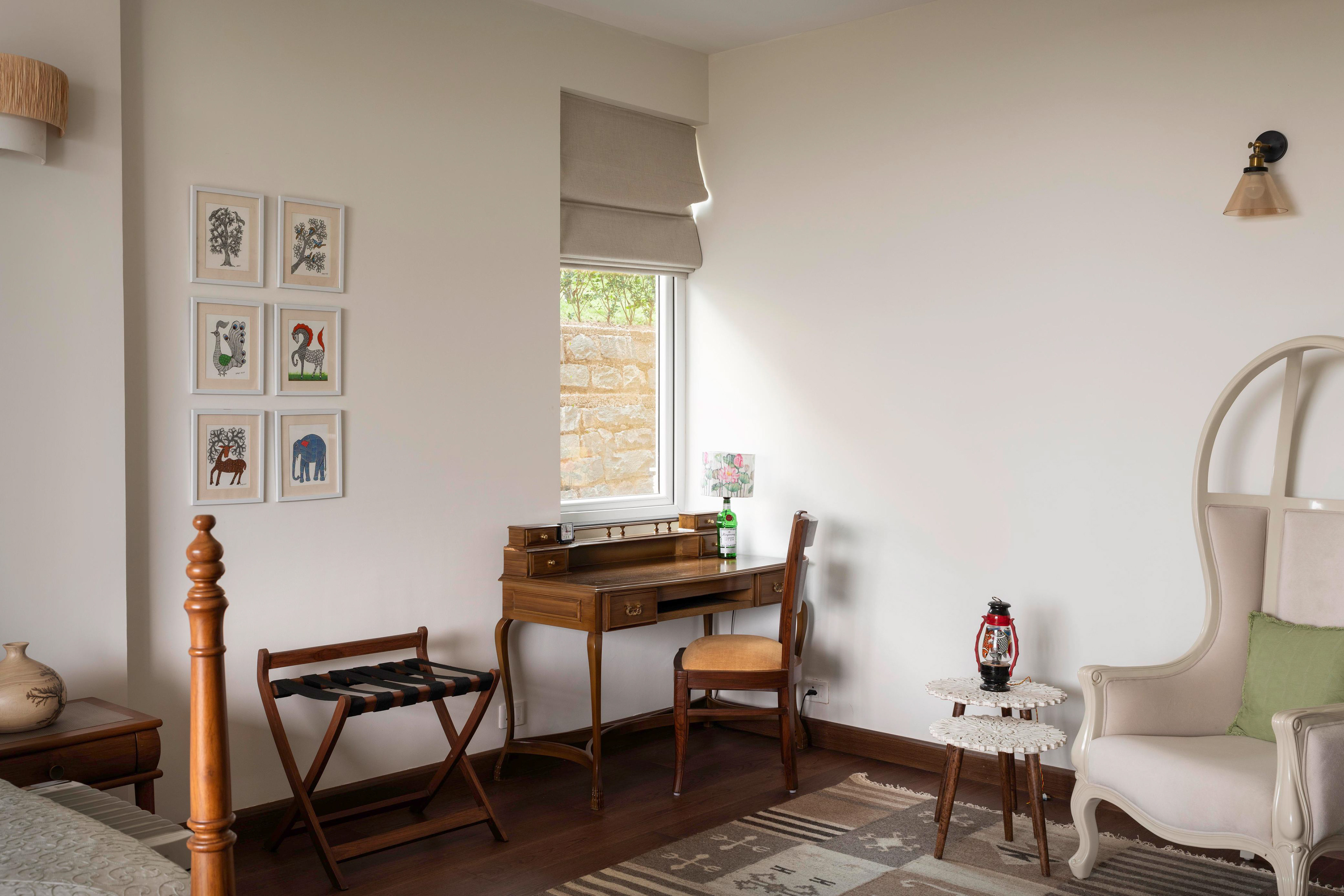 Curated with traditional Indian artwork, vintage-inspired artifacts, and comfortable textiles, this Kasauli project serves as a timeless and serene escape designed for contemplative living and connection with nature.